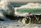 .../ Wallmonkeys Peel and Stick Wall Decals - Surf Crashing near Surfer on Boulders - 48"W x 32"H Removable Graphic / Sticks Art